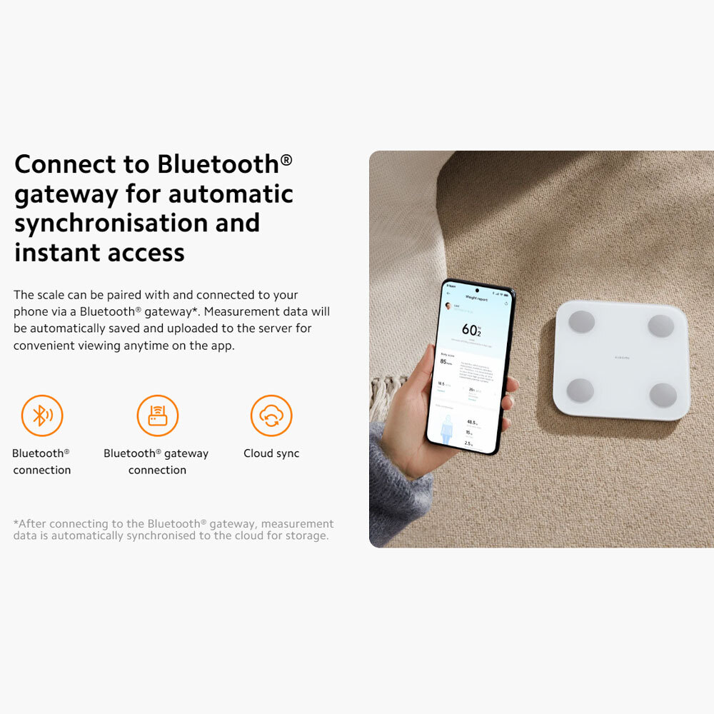 ترازو را میتوان از طریق دروازه بلوتوث با تلفن همراه شما جفت و متصل کرد. دادههای اندازهگیری به طور خودکار ذخیره شده و برای مشاهده آسان در هر زمان در برنامه آپلود میشوند.