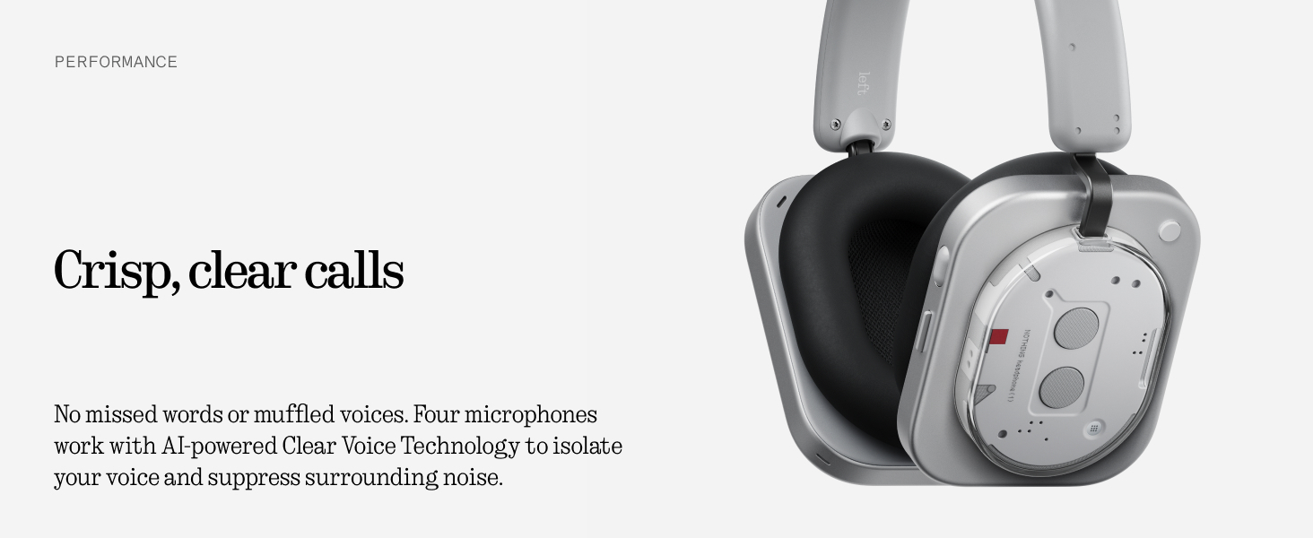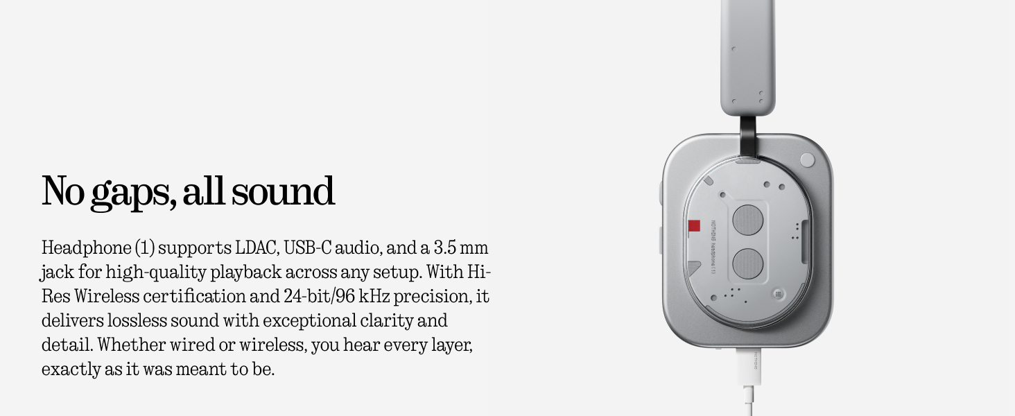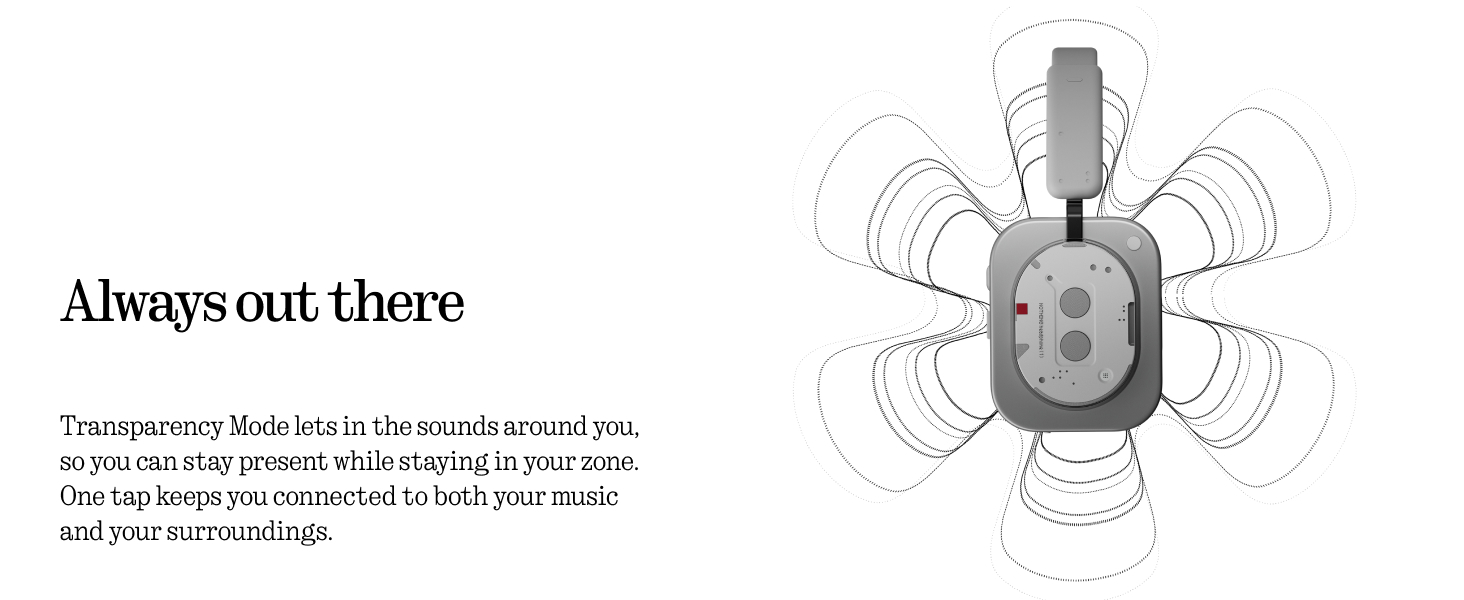 طراحی ارگونومیک و مکعبی جدید ترکیبی از پلاستیک شفاف و آلومینیوم دکمه‌های فیزیکی برای مدیریت پخش موزیک و ANC شارژدهی تا 80 ساعت با ANC خاموش و تا 35 ساعت با ANC فعال پشتیبانی از شارژ فوق سریع 5 دقیقه‌ای و شارژدهی تا 5 ساعت میکروفون‌های 4گانه مجهز به هوش مصنوعی برای حذف نویز در هنگام مکالمه میکروفون‌های FW و FB برای حذف نویز موثر فعال قابلیت ANC قابل تنظیم حالت transparency برای شنیدن صدای محیط پشتیبانی از کدک صوتی LDAC و Hi-Res پشتیبانی از فناوری صوت Spatial Audio صدای 360 درجه اتصال بیسیم بلوتوث 5.3 اتصال سیمی جک 3.5 میلی متری هدفون و درگاه USB-C