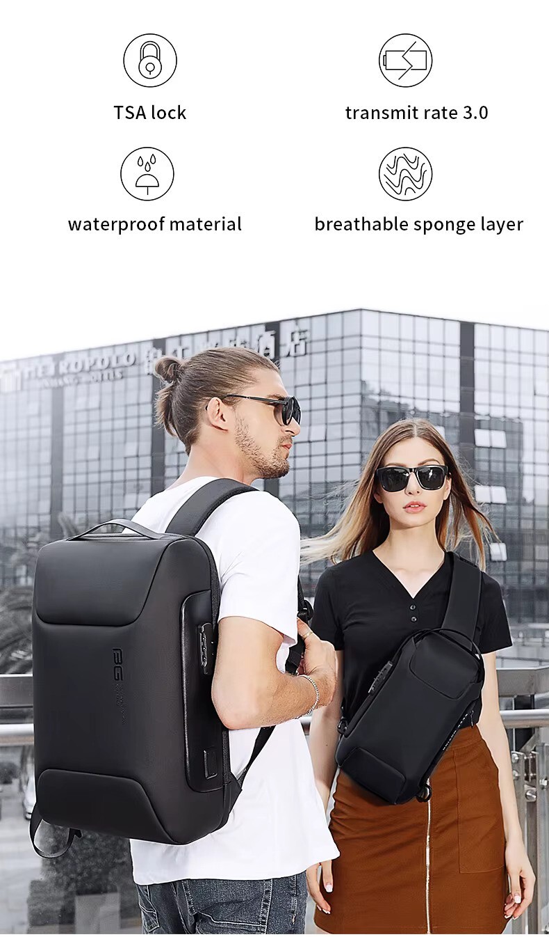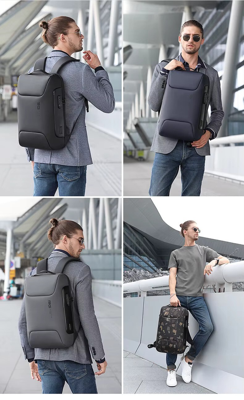 شما می توانید ازکوله پشتی مسافرتی ضد آب دارای پورت USB3.0 بنج مدل BG-7216 علاوه بر سفرهایتان، در انجام کارهای روزمره و شلوغی های شهر مثل مترو و باشگاههای ورزشی با خیال راحت استفاده نمایید. بنج در طراحی این کوله از قفل ضد سرقت استفاده کرده است.