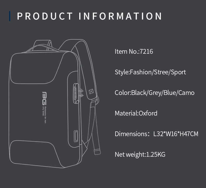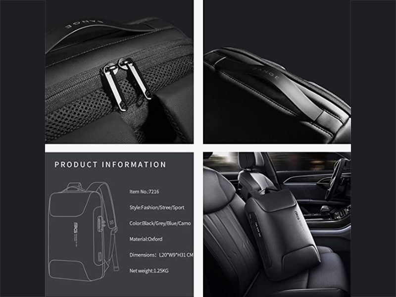 همچنین پارچه آکسفورد ضد آب می باشد و شما با خیال راحت می توانید آن را در هر نوع شرایط آب و هوایی استفاده نمایید. BANGE کوله پشتی BG-7216 را ضد ضربه طراحی کرده برای اینکه وسایل داخل کوله آسیبی نبیند.