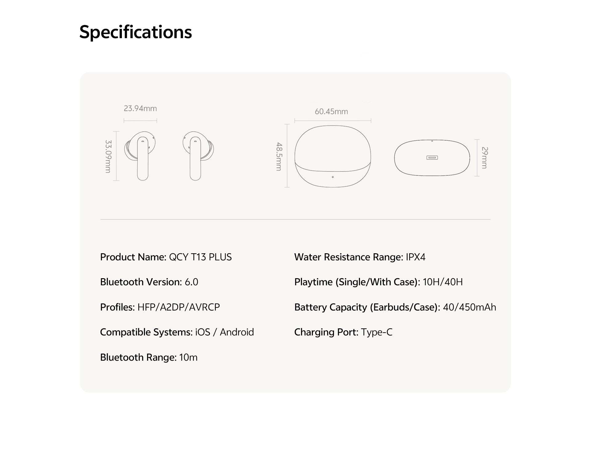 هندزفری بلوتوثی QCY مدل T13 Plus مدل جدید برند شناخته شده کیو سی وای، یکی از اقتصادیترین و درعینحال باکیفیتترین هدفون بلوتوثی های موجود در بازار است که با طراحی ارگونومیک، کیفیت صدای قدرتمند و امکانات هوشمند انتخابی عالی برای استفاده روزمره محسوب میشود.