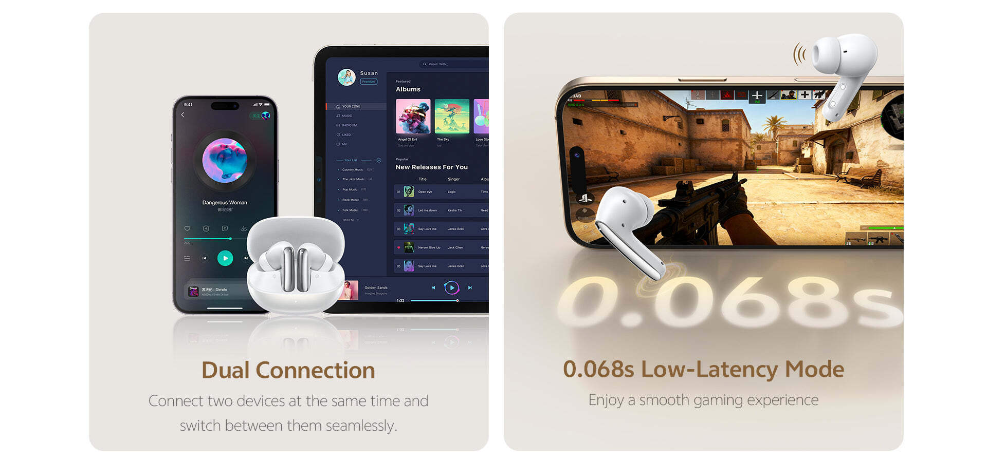 این مدل با پشتیبانی از جدیدترین نسحه بلوتوث یعنی نسخه 6.0، حالت گیمینگ، اپلیکیشن اختصاصی و فناوری کاهش نویز مکالمه، تجربهای حرفهای در تماس، موسیقی و بازی ارائه میدهد. دوام باتری بالای ۳۰ ساعت نیز آن را به همراه همیشگی شما تبدیل میکند.