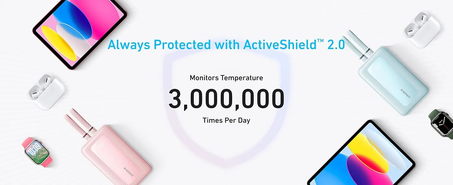 انکر در این مدل از فناوری ایمنی ActiveShield 2.0 استفاده کرده که دما را 35 بار در ثانیه بررسی میکند و خروجی را تنظیم میکند تا از دستگاههای شما در برابر گرمای بیشازحد یا اتصال کوتاه محافظت شود.
