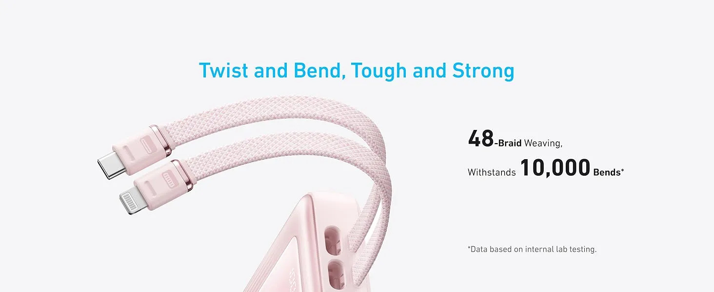 یکی از برجستهترین ویژگیهای این مدل، وجود دو کابل داخلی بافتهشده است: یک کابل USB-C و یک کابل لایتنینگ دارای گواهی MFi (سازگار با اپل). این کابلها با دوام بیش از 10,000 بار خم شدن، نیاز به حمل کابل جداگانه را از بین میبرند. - شارژ همزمان 4 دستگاه