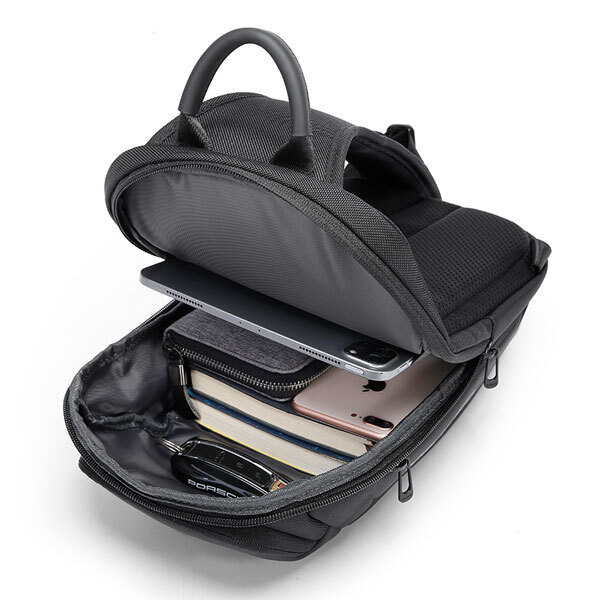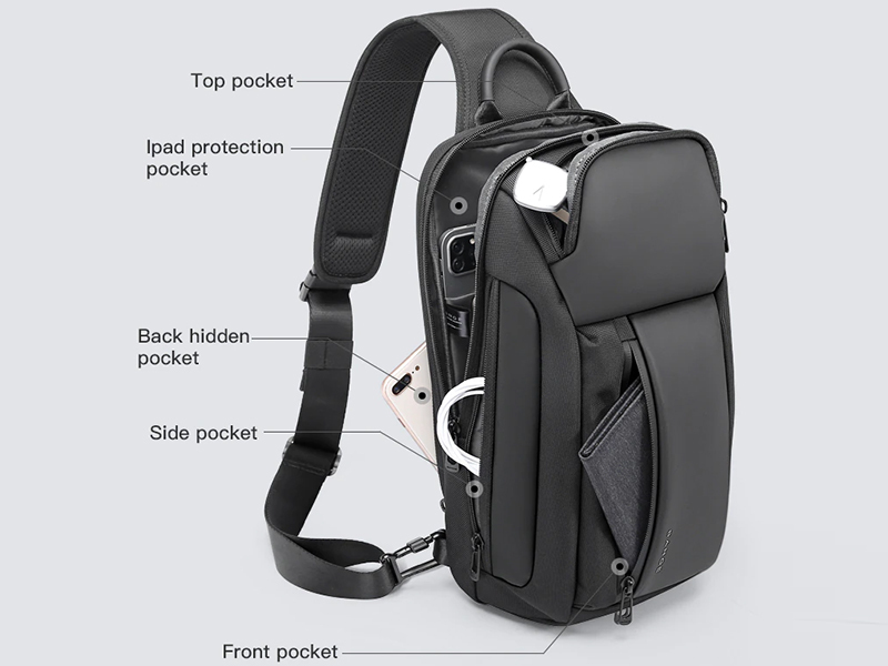 به علاوه یک جیب مخفی با امنیت بالا در پشت کوله قرار دارد که می توانید لوازم مهم خود را در آن قرار دهید. شایان ذکر است که همه جیبها برای حفظ امنیت بیشتر دارای زیپ هستند. زیپ به آرامی باز و بسته می شود، گیر نمی کند، و استفاده از آن آسان است.